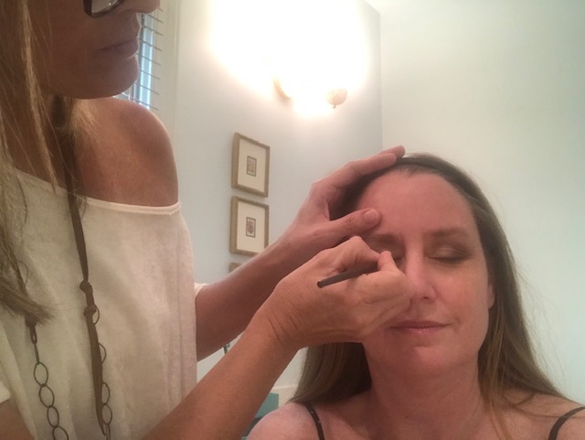 After moisturizing, I apply Laura Mercier’s Illuminating Tinted Moisturizer all over my face including eyelids. Beth likes Clinique Super Balanced Makeup for more coverage.